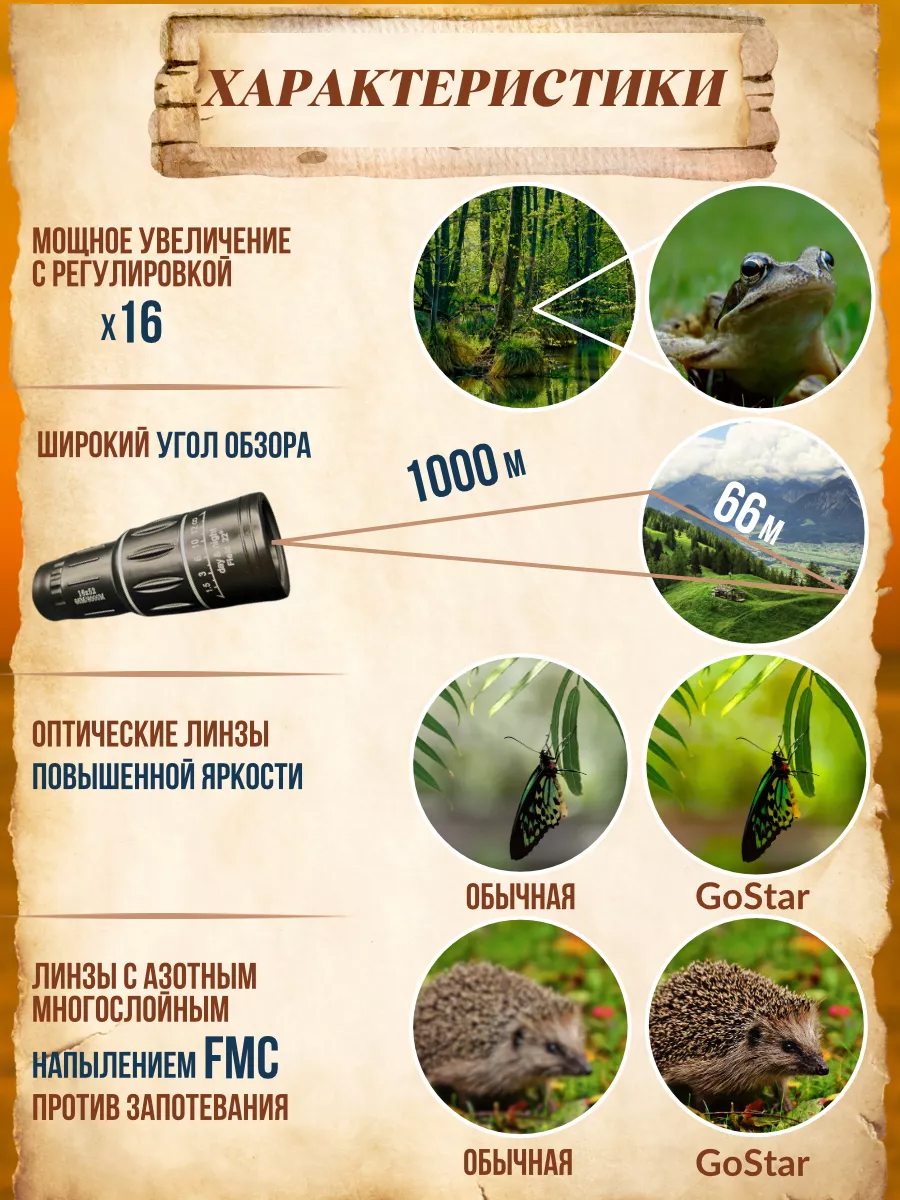 Монокуляр — это компактный оптический прибор, который занимает мало места и всегда под рукой. Легкий, но мощный монокль порадует опытных туристов, для которых важен вес и прочность корпуса. Влагозащитный и противоударный корпус оценят любители охоты и рыбалки.